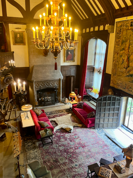 The castle was built in the middle of a many thousand acre reserve and was expertly executed. Only the best materials were used, and every modern feature was included, but concealed so as to maintain the Tudor style and the illusion of old construction.