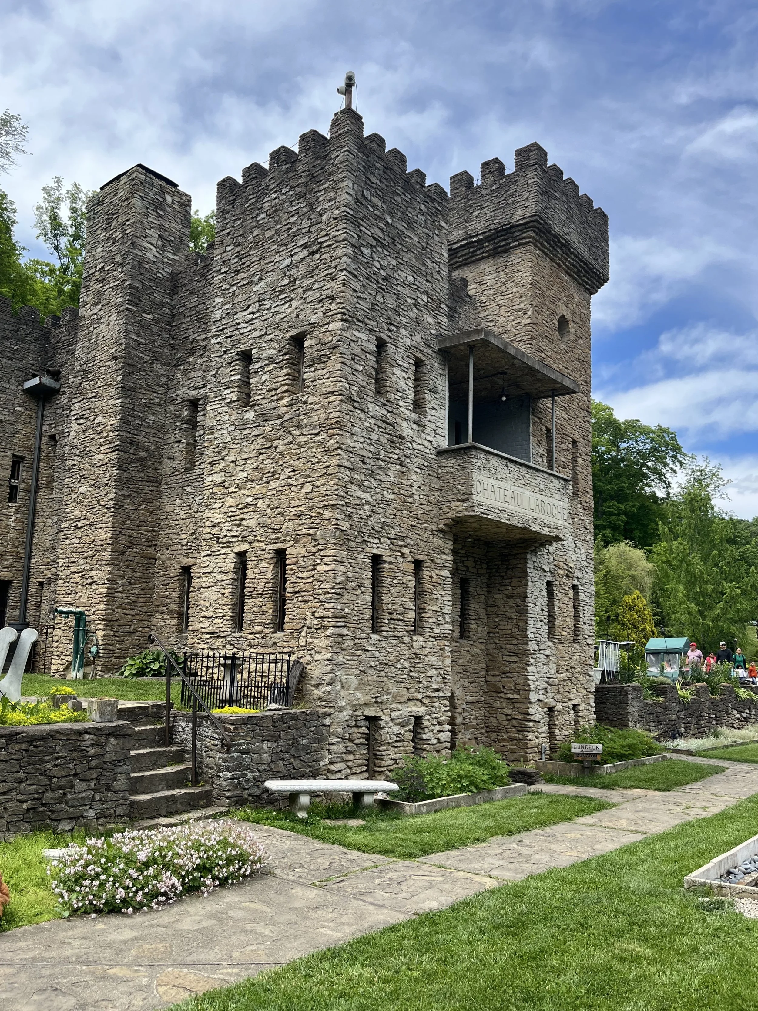 On the other end of Ohio, in the little bedroom community of Loveland, near Cincinnati, the Chateau Laroche, aka “Loveland Castle,” is an example of a similar romantic desire, but executed on a shoestring budget. Unlike Mr. Seiberling ordering craftsmen to work, WW I veteran Harry Delos Andrews began stacking river rocks with mortar in 1929 and by 1955, the same year F.A. died, Harry was ready to move into his castle. He lived there by himself until his death in 1981.