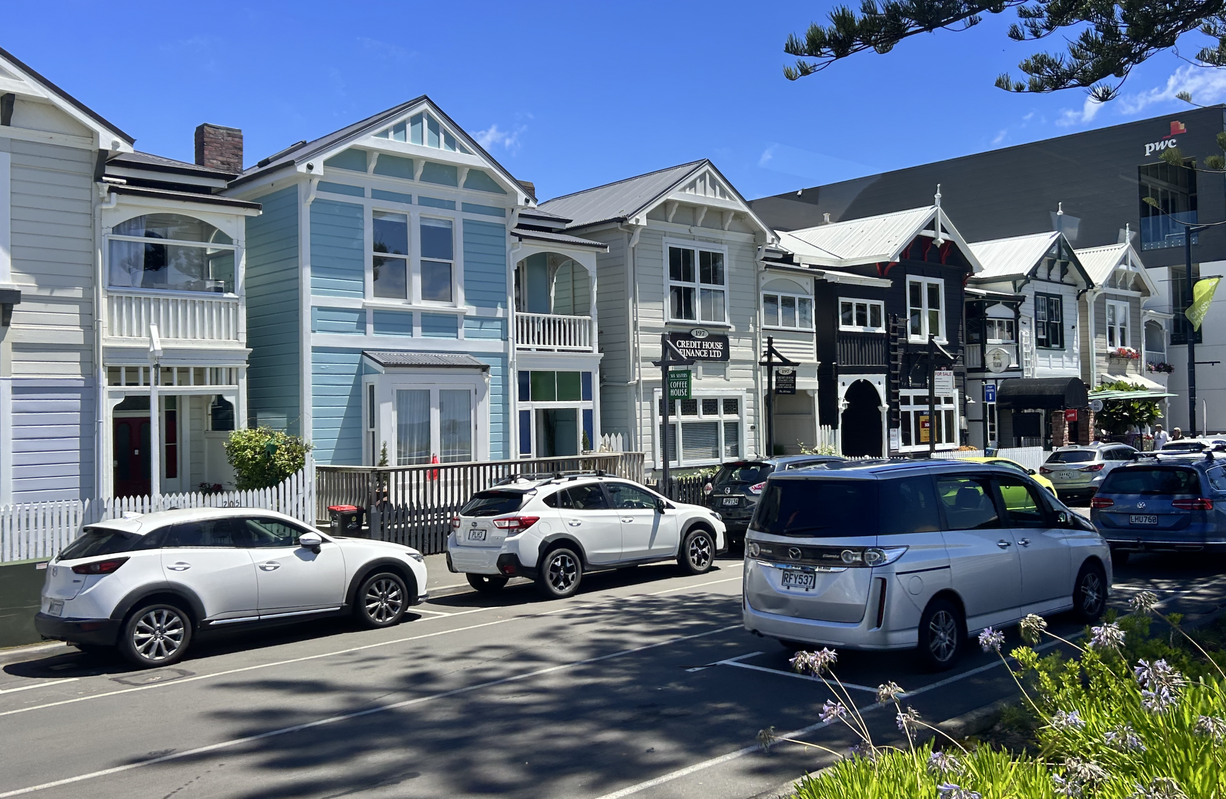 When touring the town the architecture clearly gives away which buildings pre-date the 1931 quake. This row of early 1900s homes facing the beach are known as the Six Sisters.