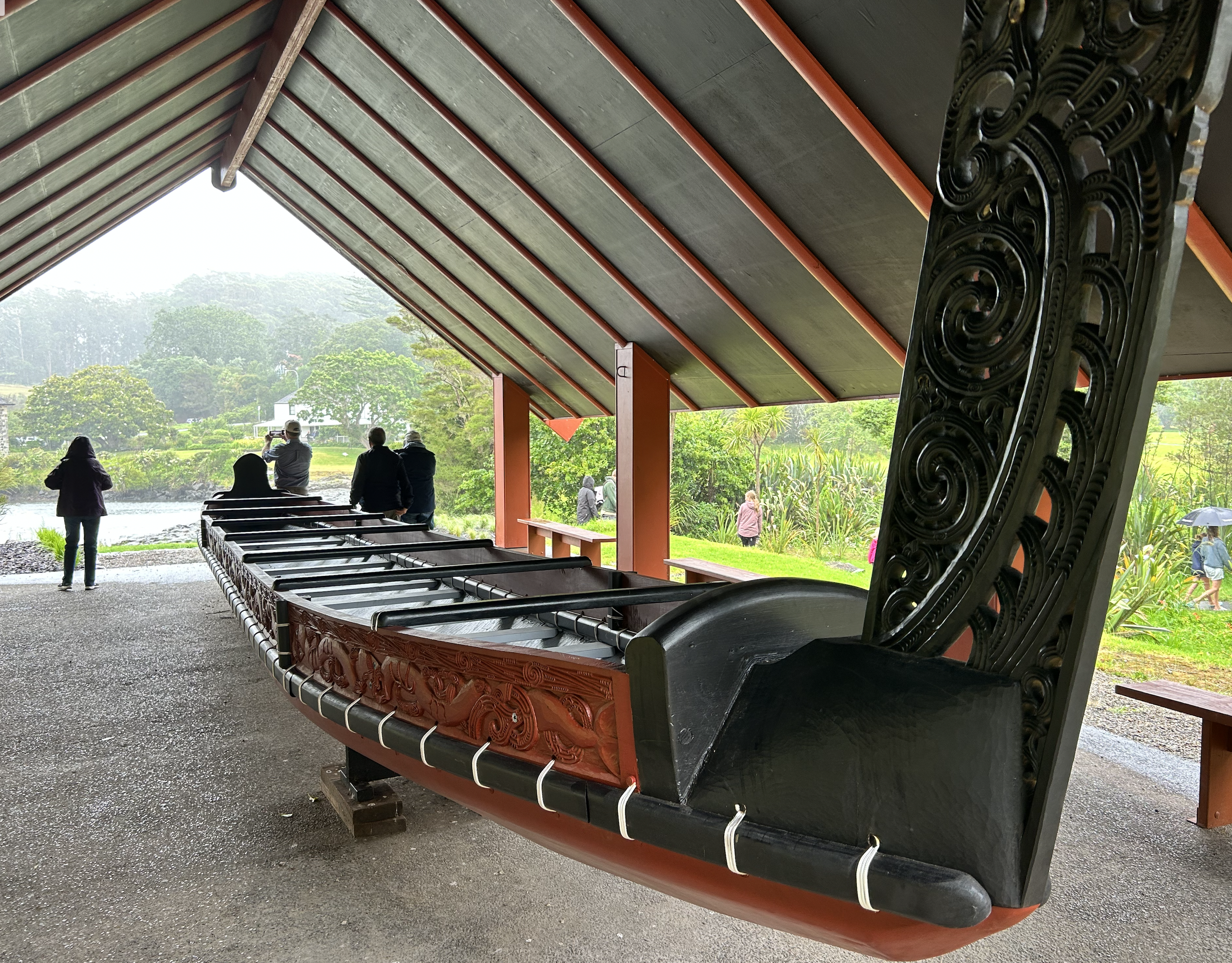 On the way back down from the Kauri forest, we made a quick, rain dampened stop at Kerikeri, one of the first places the Maori and Europeans lived side by side. The shelter was recently built to store and exhibit a waka taua, or war canoe, for use on the Kerikeri inlet.
