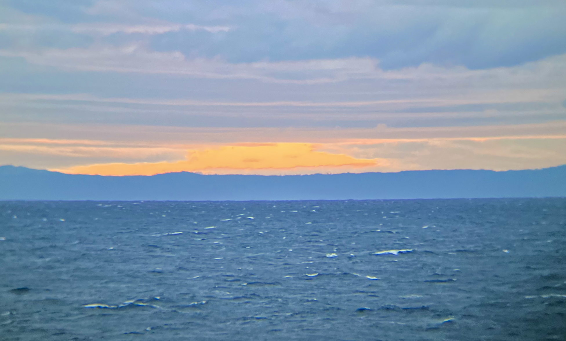 Sunset for our last night at sea. The short trip south to Aukland was memorable for the headwind and sizable seas. The pitching and rolling were enough to make you wonder if gravity was going to be enough to keep you in bed. Not to worry, the rough patch ended when the ship ducked behind the Barrier Islands near Aukland.