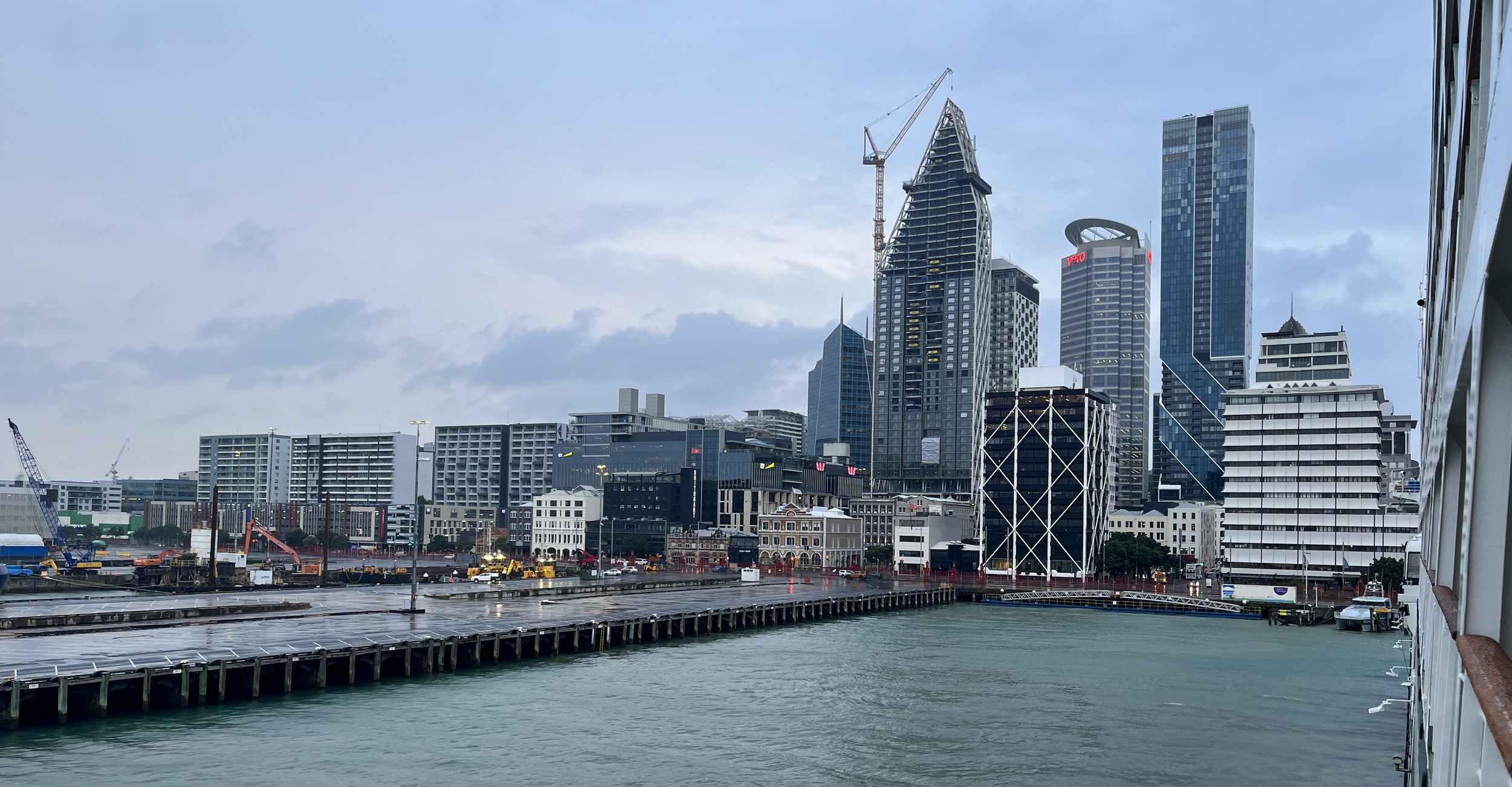The ship entered port while we slept, so 619 passengers awoke to a view of rainy Aukland. Our original plan called for a day enjoying the town before boarding the flight home, but a transportation snafu changed the plan and we departed the ship directly for the airport.