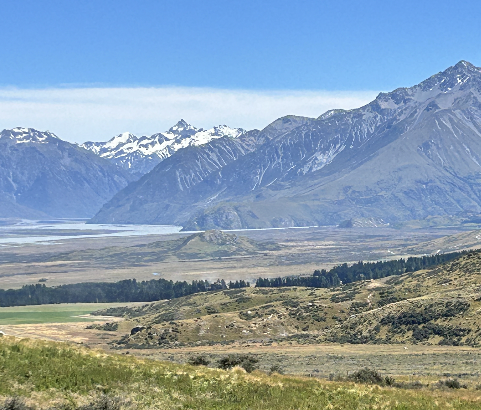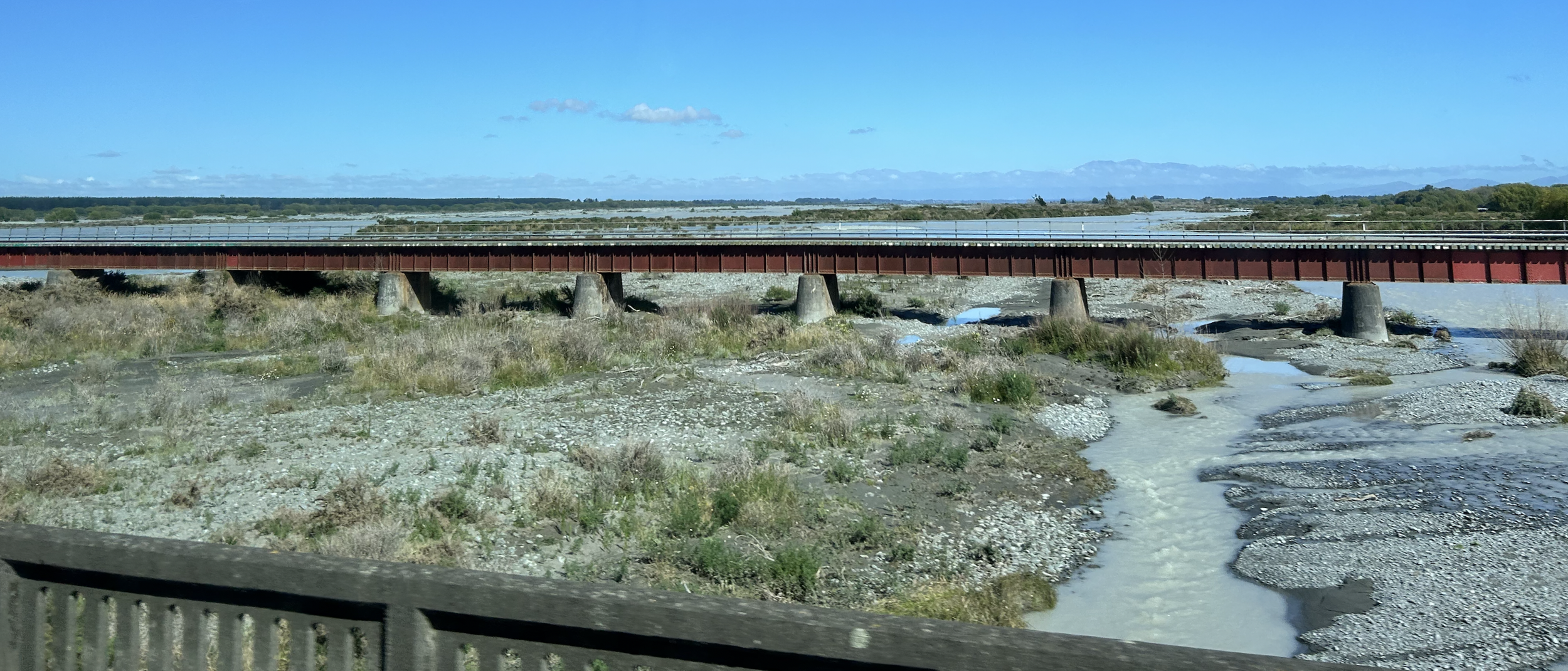The highway heading west crossed several “braided rivers” running down from the mountains. The term refers to a wide and shallow river bed that features many stream paths that weave together. These rivers are prone to flash flooding.