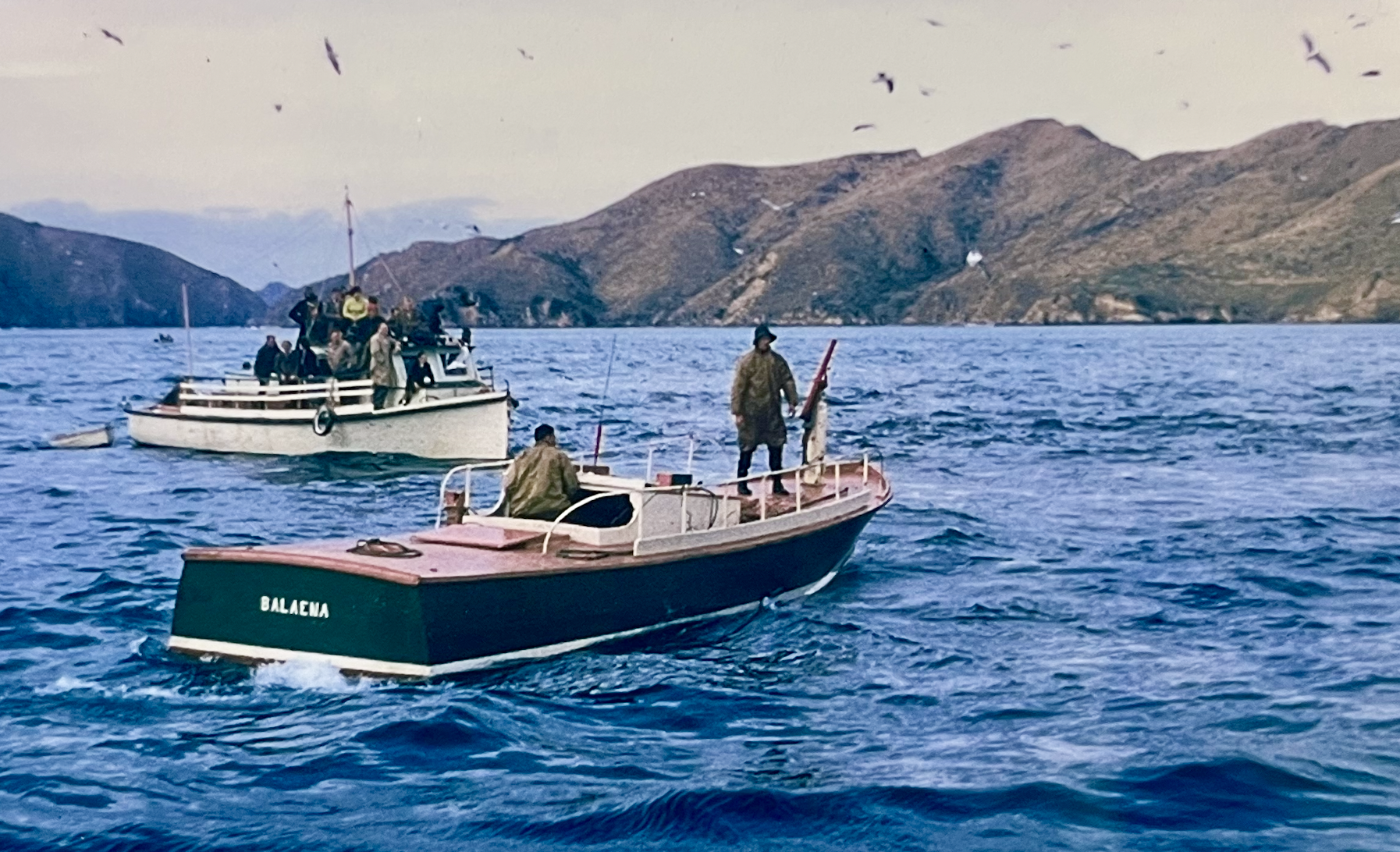 The coastal whale fishery continued until 1965 and incorporated modern technology including power boats, harpoon cannons, and radio guidance from cliff-top spotters.