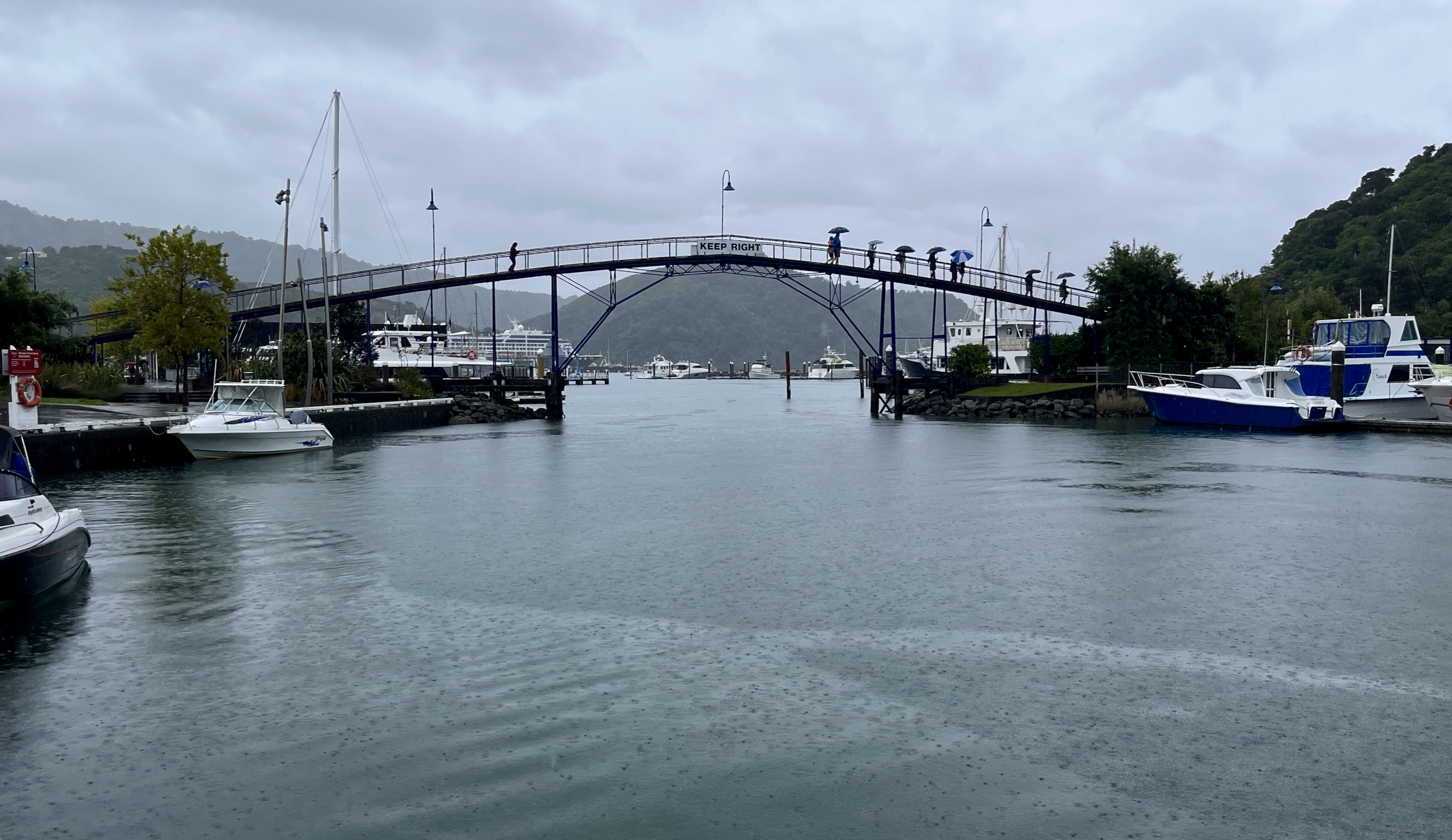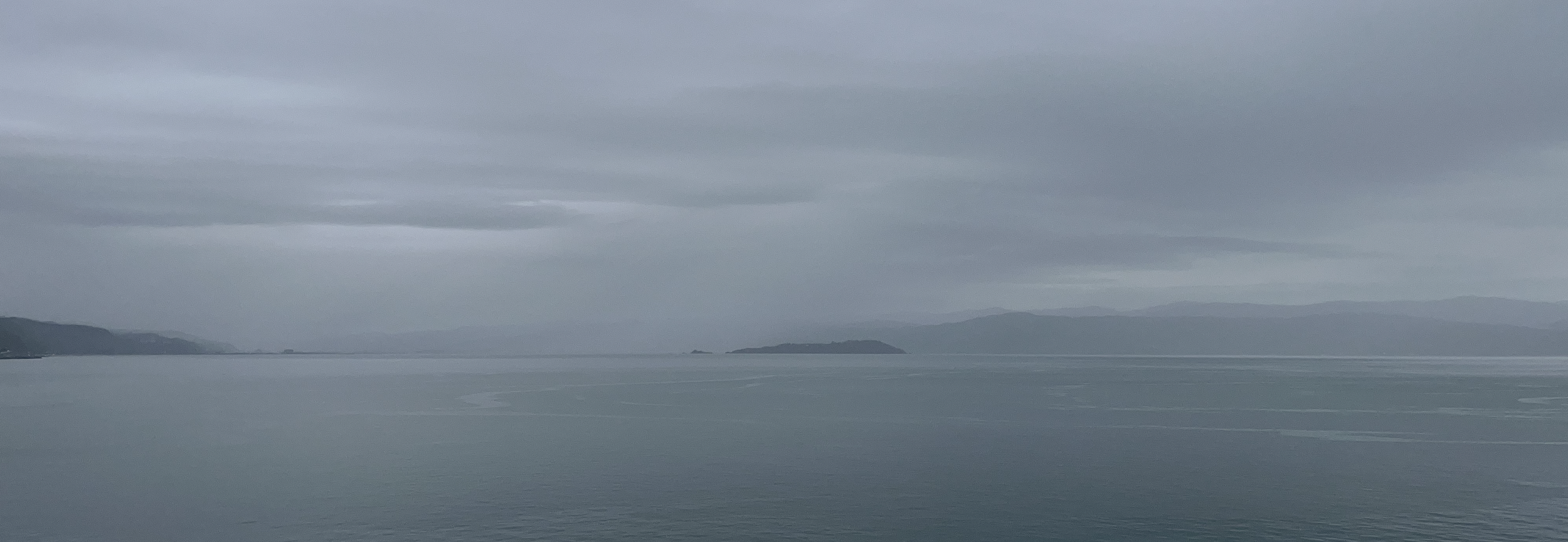 When we’d had enough of Picton’s rain, for which the cashier at the local Four Square grocery apologized to us, we made our way back to the ship for the middle afternoon departure. The drizzle continued all the way up Queen Charlotte Sound, finally letting up about the time the Pilot boat came along side to collect the harbor pilot.