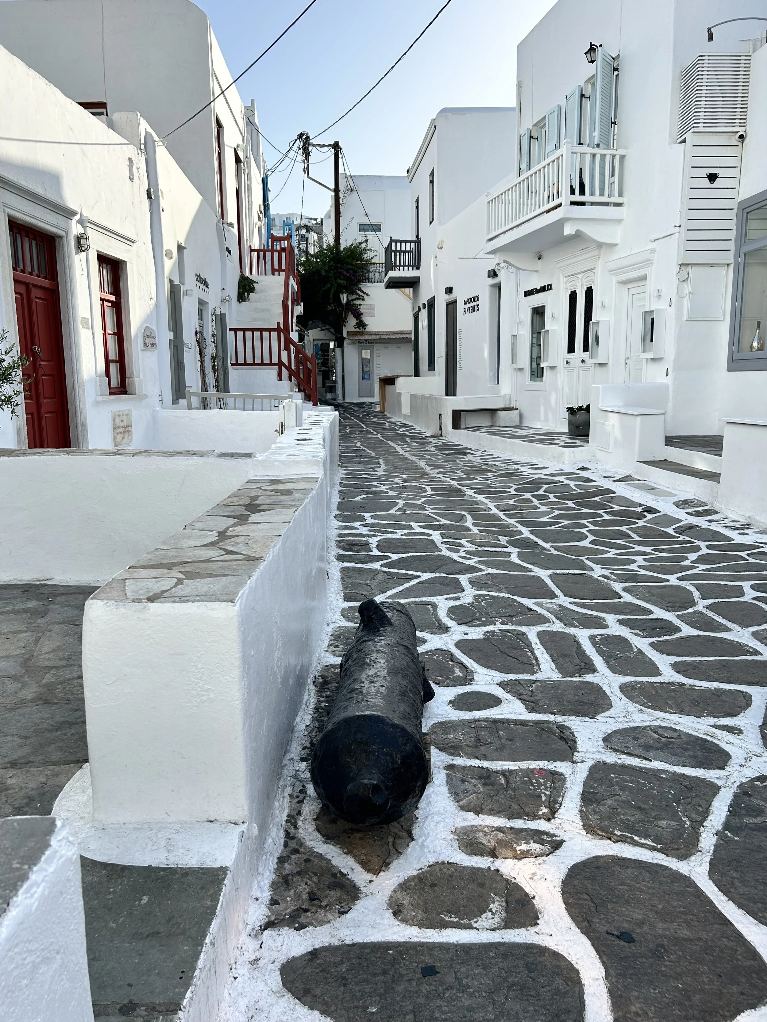 Snapping a photo of an empty street in Mykonos Town was challenging. Even with the sun just cresting the hills, the streets were busy with locals getting breakfast, cleaning up from the night before, or restocking for the day to come.