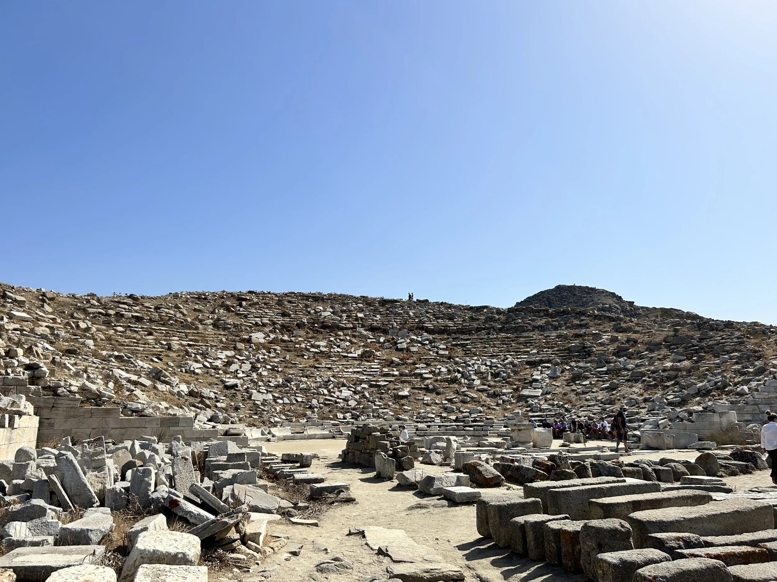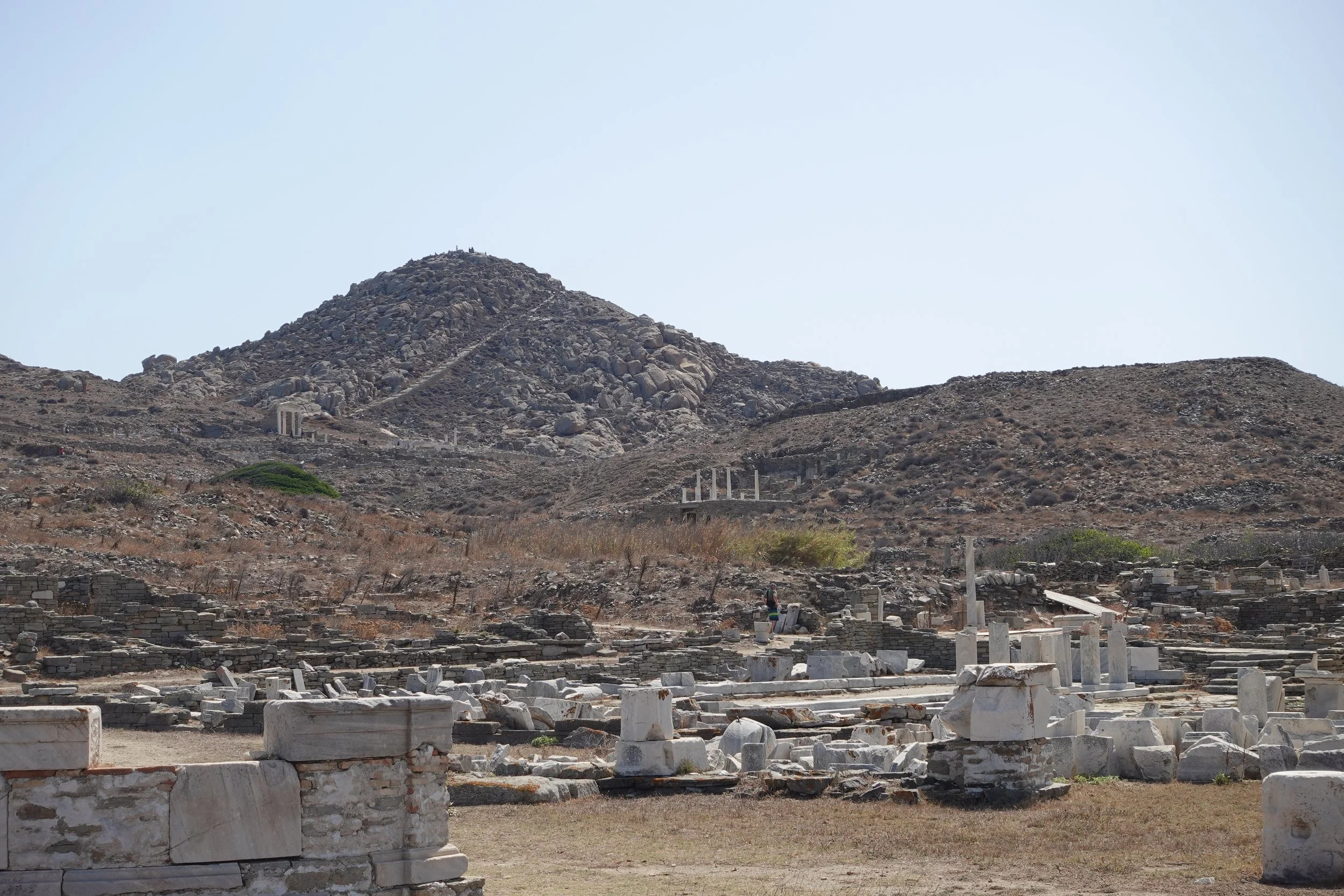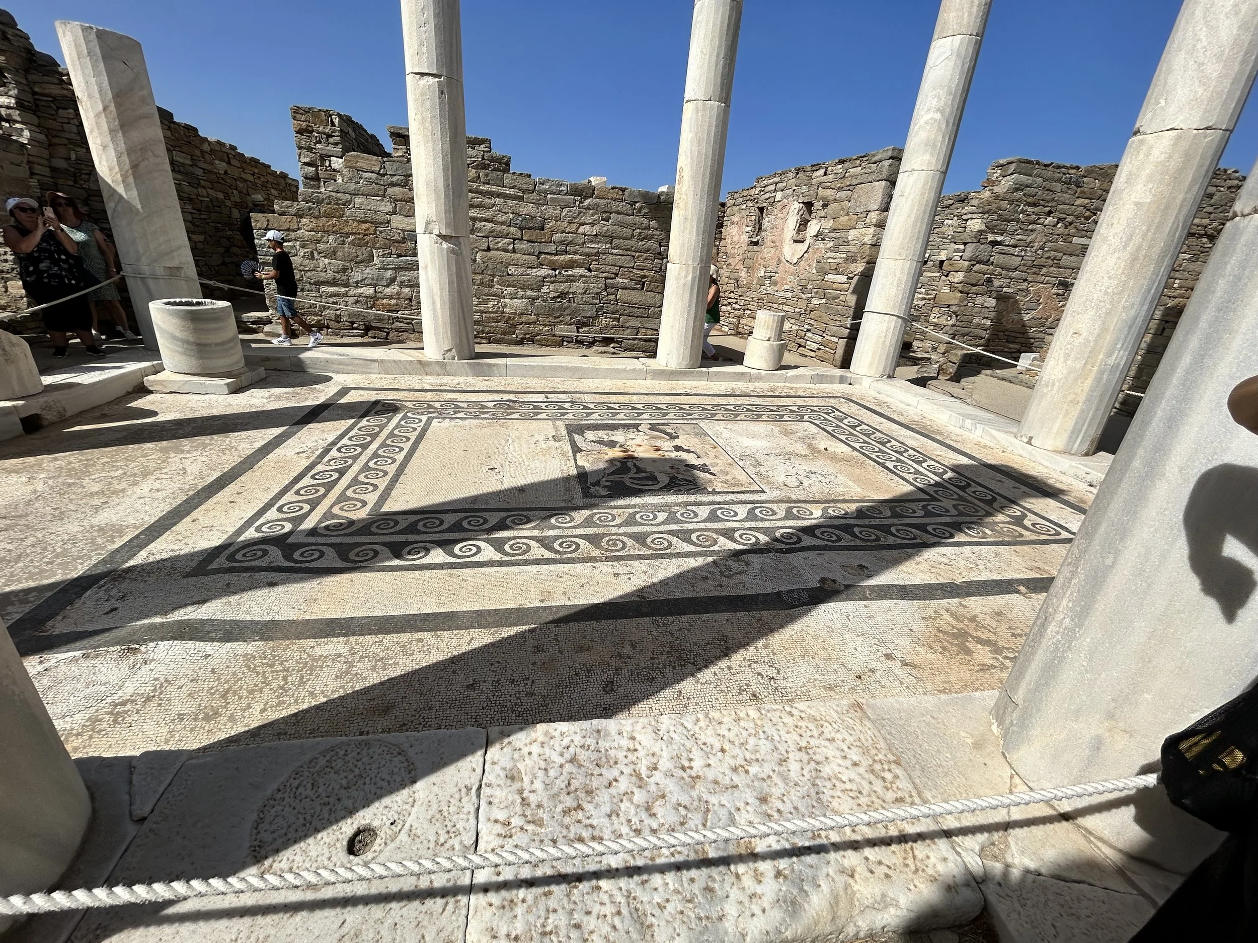 Delos is a magnificent archaeological site with a sprawling city full of well preserved artifacts. Despite the shortage of water and other natural resources, in its day, Delos was the cultural, mythological and even financial center of the Greek world. It was an important island to the ancient Greeks, even before it was identified as the birth place of the twin gods Apollo and Artemis, for whom there were massive temples. For comparison, our guide suggested imagining The Vatican, Paris and New York all rolled into one. In the early Roman era, the city was a free port, meaning that anything trans-shipped in the port was exempt from taxes. As a result, it became a premier commercial center and the largest slave market in the greater region. It maintained its status until the end of the first century BC when armed conflict and shifting trade routes left the city in decline. A small population remained after the end of the Roman Empire, but it was abandoned soon after.