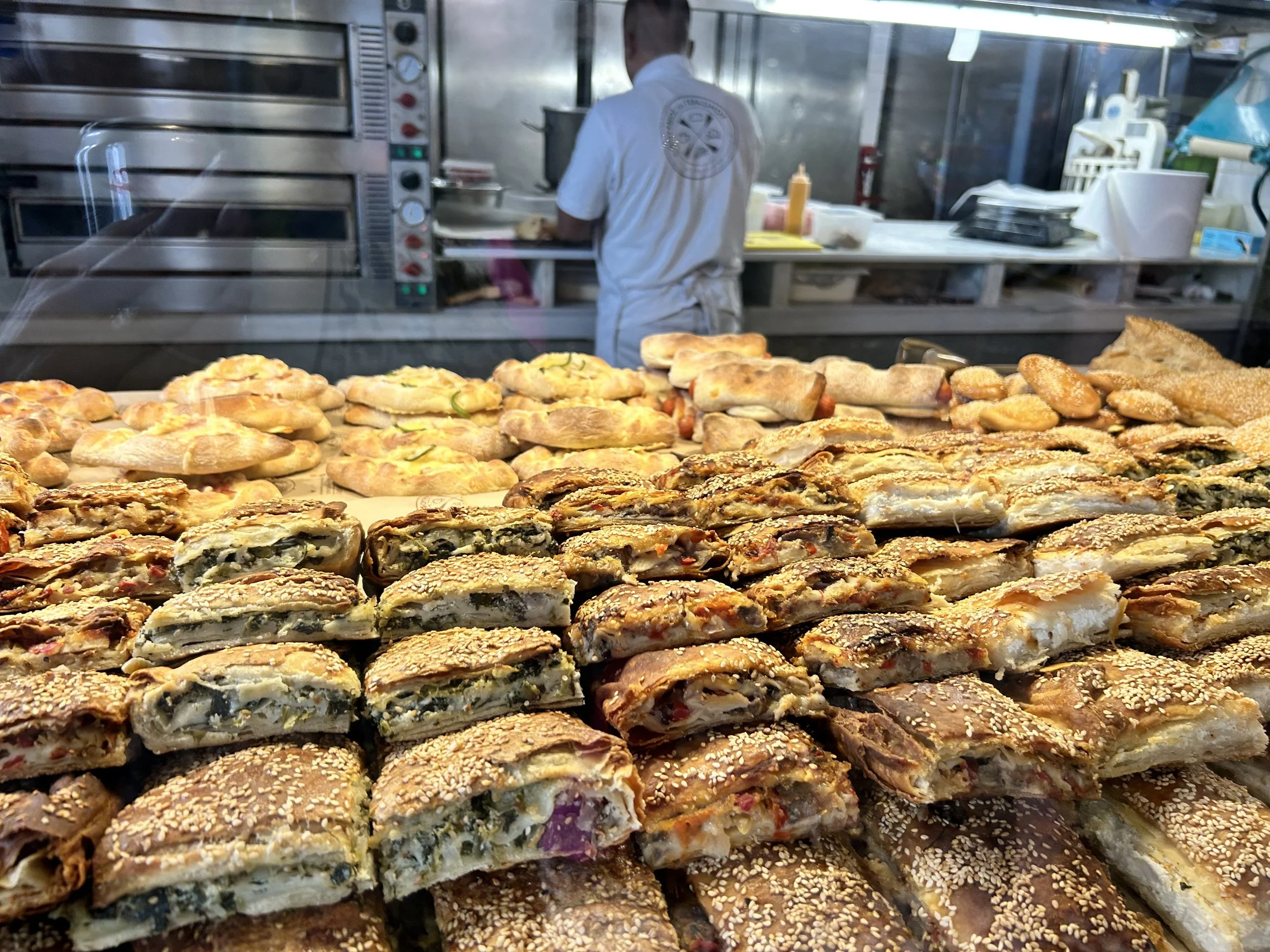 The crew of this bakery were busy filling the display case when we popped in for some pastries.